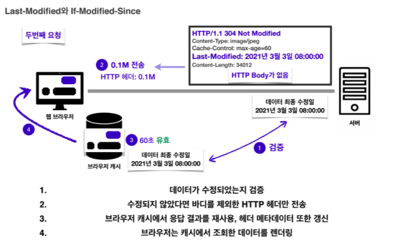 좀 더 간단한 방식으로 ETag와 If-None-Match 검증헤더가 있습니다.