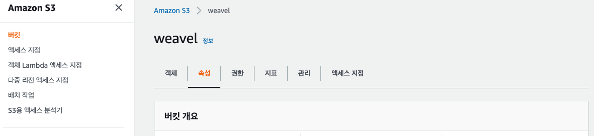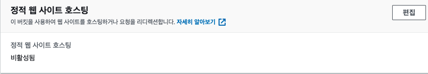 여기서 속성에서 맨 아래 정적 웹사이트 호스팅 편집을 누릅니다.