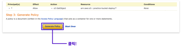 최종적으로 'Generate Policy' 버튼을 누르면 정책이 생성이 되고