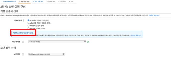 그 다음으로 넘어가면 ACM 인증서를 발급 받아야 합니다.