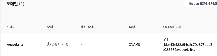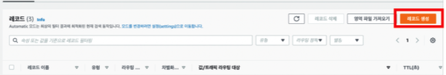 도메인 목록에서 Route 53에서 레코드 생성 버튼을 눌러 생성 해주어야 합니다.