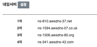 에서 Route53에 레코드 값 4개 값을 아래와 같이 넣어주면 됩니다.