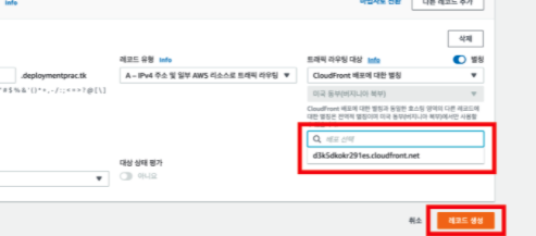 CloudFront 배포에 대한 별칭으로 설정해주면 됩니다.