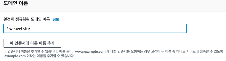 3. 대체 도메인 이름을 입력해줍니다. (그냥 사용하려는 도메인을 넣어도 됩니다.)