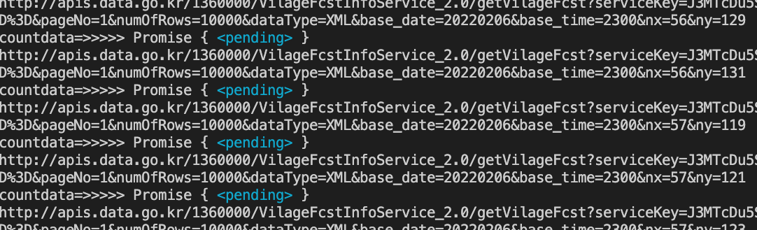 findLostData 함수에서 배열을 처리 하는데 Promise.all 과 map을 이용해서 비동기 기능이 있는 함수(checkWeatherData)를 병렬처리 하였고,