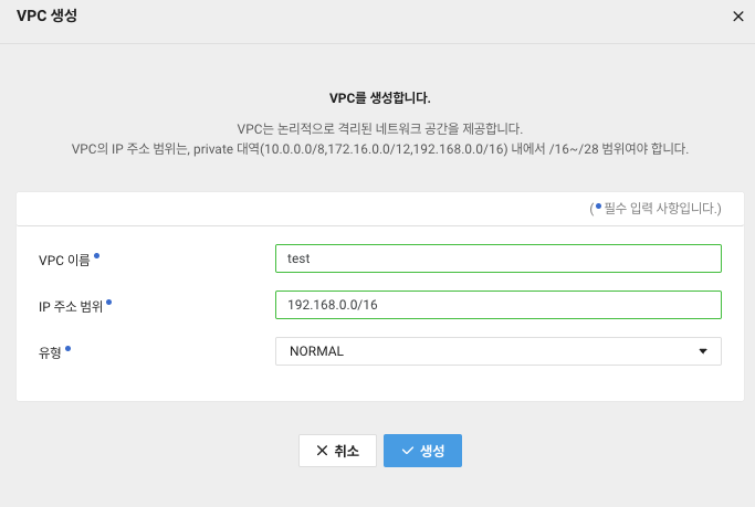 - 반드시 내부 네트워크용 IP 대역만 사용해야 하고, 네트워크 크기도 너무 크거나 너무 작지 않도록 /16 ~ /28 사이에서 적절하게 설정해야 한다는 뜻