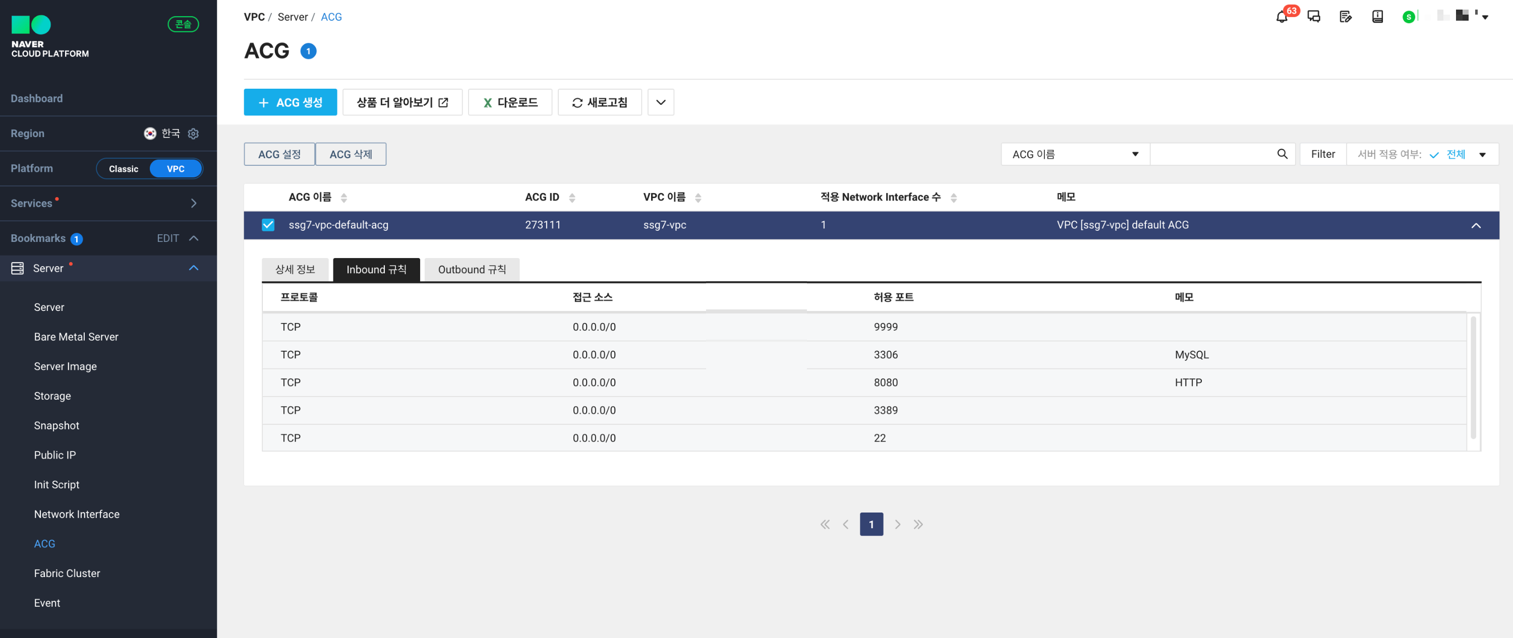 외부 접속가능, NCP 인바운드 3306 허용