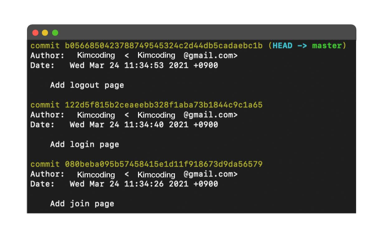Commit 기록은 위의 그림처럼 날짜, commit한 사람, commit 메시지가 모두 기록됩니다.