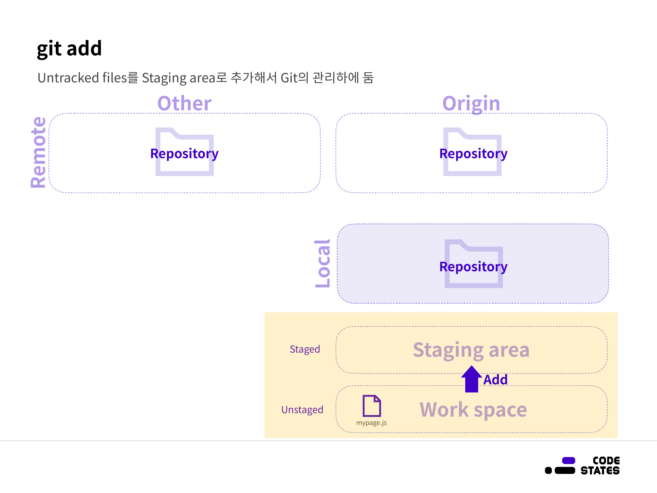내 Local의 untracked file을 Git의 관리 하인 staging area로 추가할 수 있습니다.