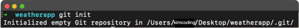 내 Github에 weatherapp Repository를 하나 만들고 그 Repository 주소를 git remote add origin 명령어 뒤에 입력함으로서 해당 Remote Repository와의 연결이 완료되었습니다. 명령어를 입력했을 때 터미널창에 나타나는 변화는 없습니다.