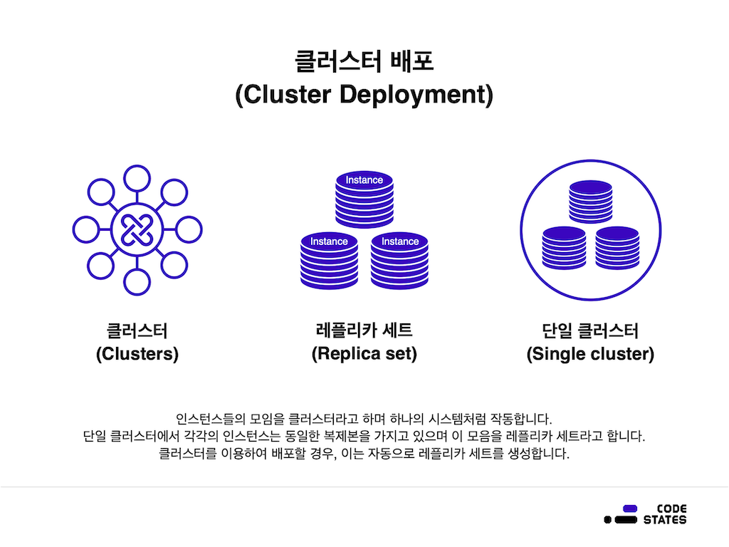이 설정 덕분에 레플리카 세트의 인스턴스 중 하나에 문제가 발생하더라도 데이터는 그대로 유지되며, 레플리카 세트의 애플리케이션에서 나머지 작업을 할 수 있습니다. 이 과정을 위해 클러스터(서버 그룹)를 배포하면, 자동으로 레플리카 세트가 구성됩니다.