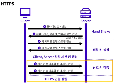 Hand Shake -> 비밀 키 생성 -> 상호 키 검증